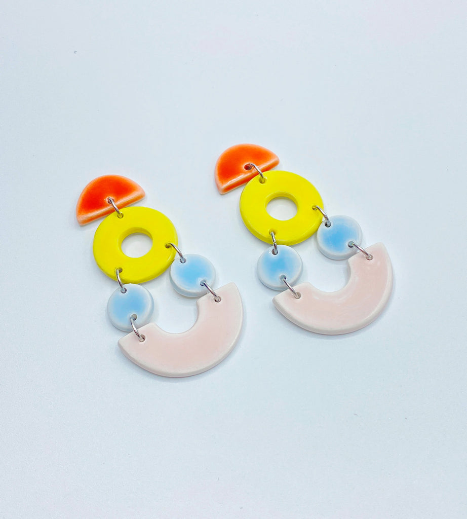 Son unos maravillosos pendientes de cerámica cortados a mano y esmaltados con diferentes colores. Ligeros como plumas!