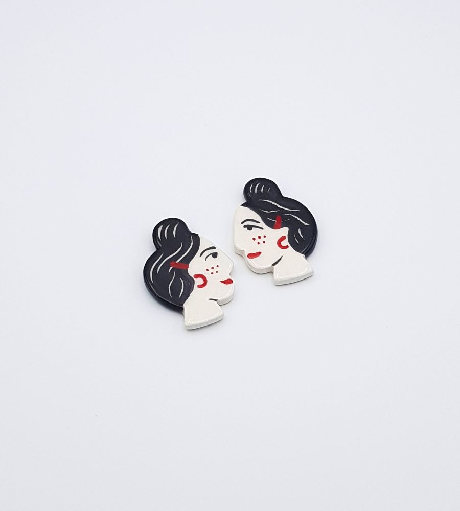 Pendientes de cerámica cortados y decorados a mano, con esmaltes de diferentes colores. Disponibles en dos acabados, de frente y de perfil. Para mis señoras más flamencas!!