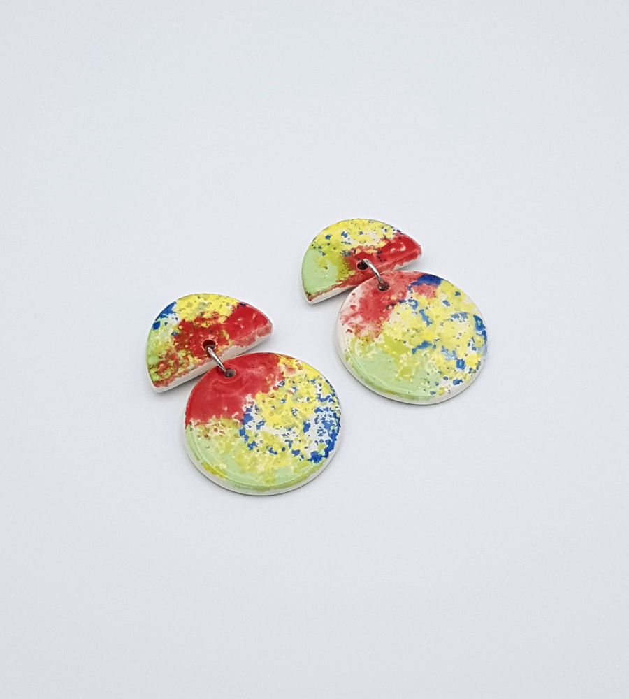 Pendientes de cerámica modelados a mano. Salpicados en esmaltes de diferentes colores y acabado brillo. No te los querrás quitar!