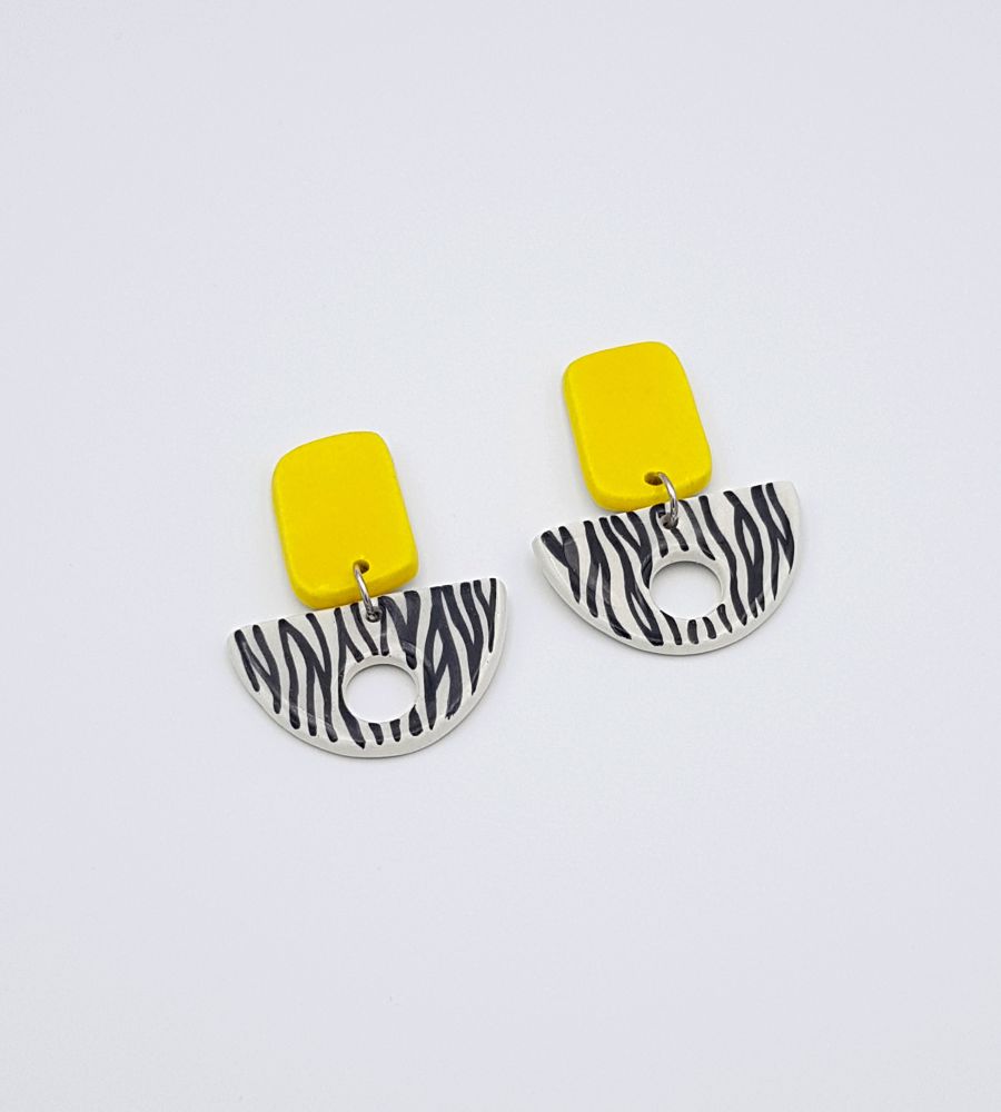 Maravillosos pendientes de cerámica cortados a mano y decorados con un estampado étnico y original. La pieza de arriba la tienes disponible en dos colores, rojo o amarillo, para que puedas elegir el que mejor te combine, ideales puestos!!!
