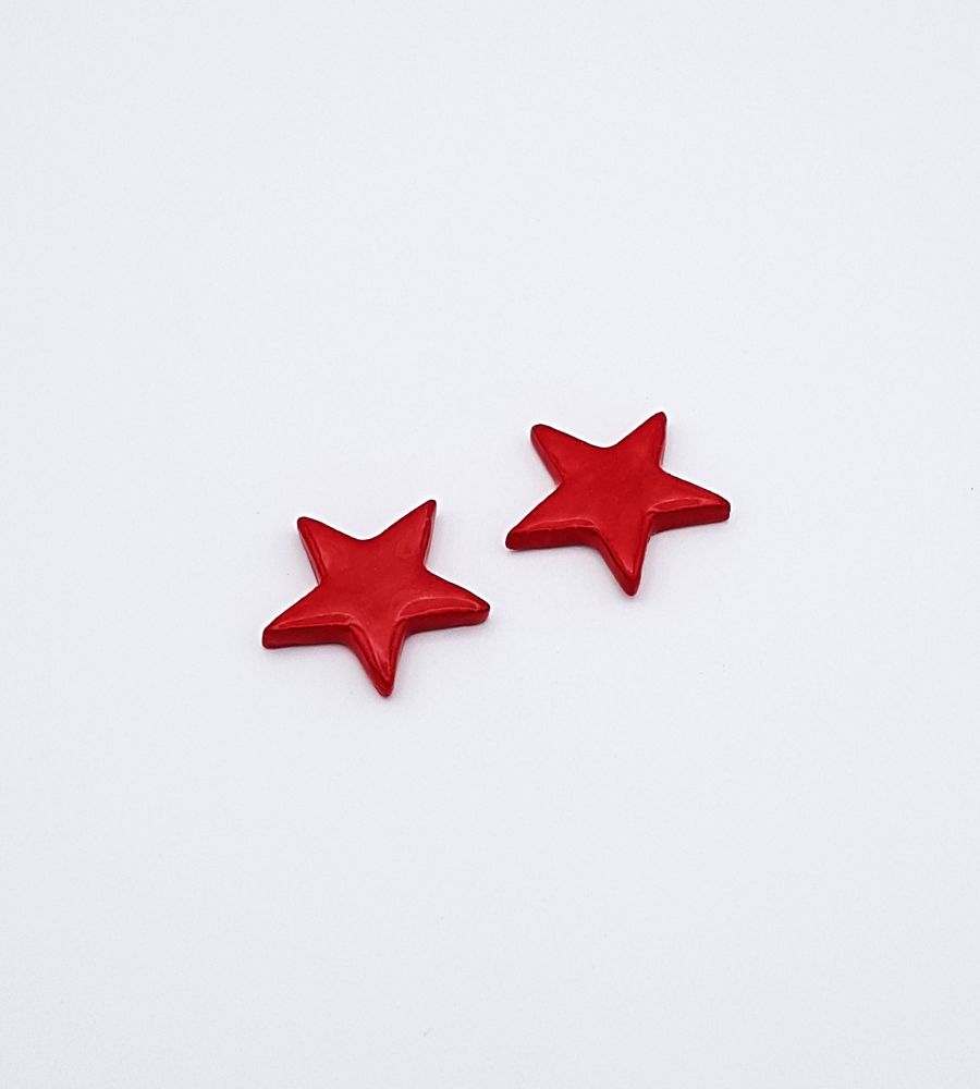 Pendientes de forma de estrella, pieza cerámica esmaltada con brillo y acabados de diferentes colores. Disponibles en rojo, blanco con un toque de oro y jaspeadas con toque de oro, que tanto os gusta. Puedes encontrarla un poco más pequeña en el modelo Little Star